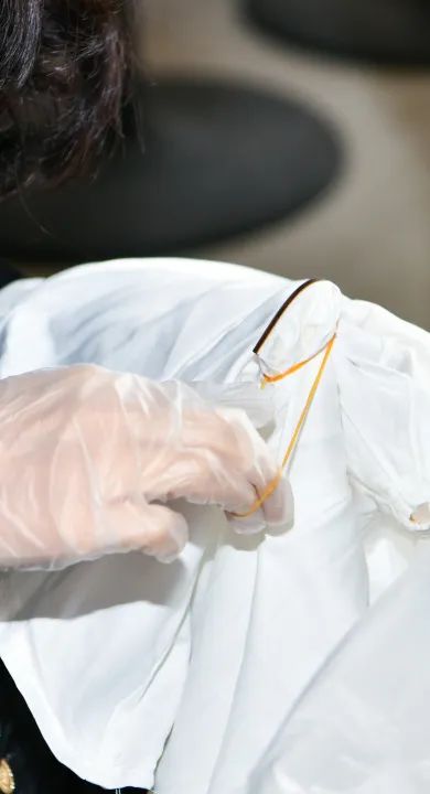 不用画笔也能呈现最美画卷?一根皮筋也能勾勒出一片风景?听了吴老师的讲解,大家已经跃跃欲试,想亲身感受扎染的魅力,制作一把属于自己的扎染雨伞。